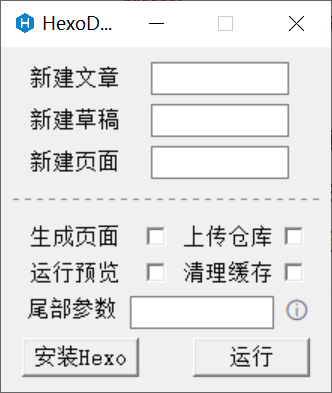 一个用于Hexo博客的GUI命令助手,通过GUI页面快速完成新建文章、运行生成、部署和预览等常用操作,免去开终端输入命令的麻烦。